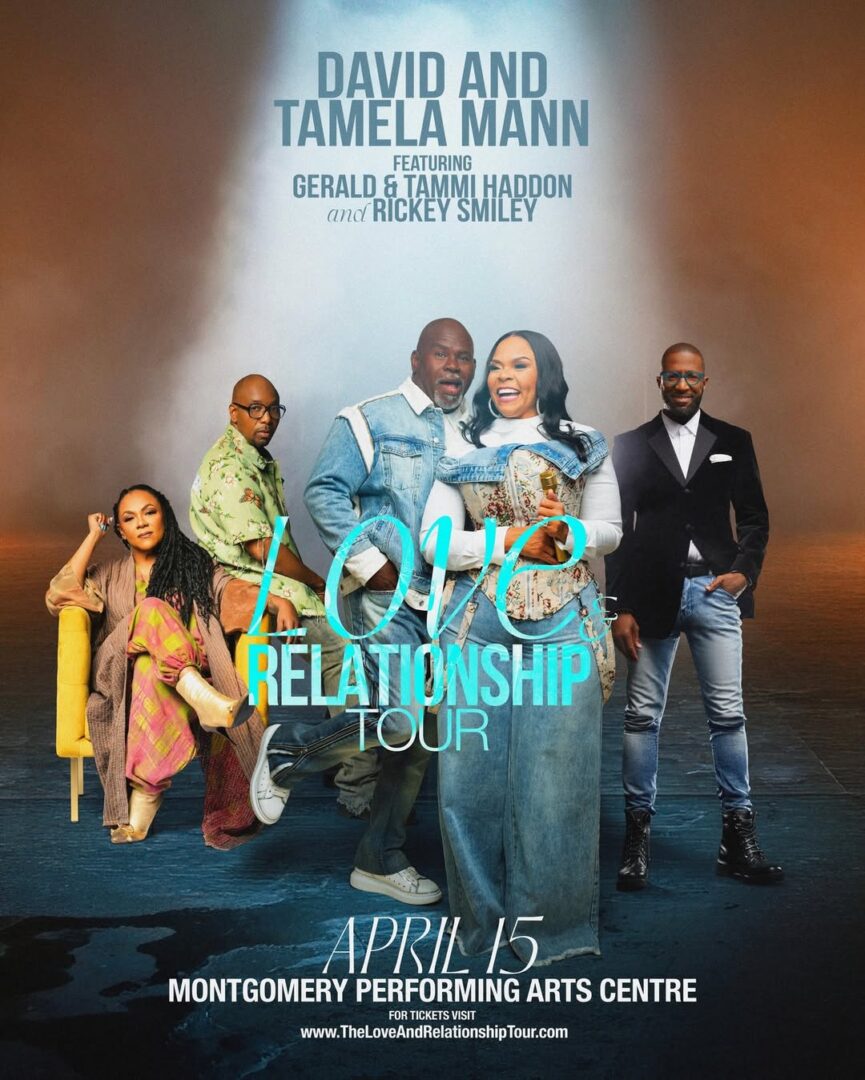 « All Events This event has passed. Montgomery, AL: David & Tamela Mann’s Love & Relationship Tour April 15 « Charlotte, NC: Rickey Smiley Live Atlanta, GA: Rickey Smiley Live » Add to calendar Google Calendar iCalendar Outlook 365 Outlook Live Details Date: April 15 Website: https://www.ticketmaster.com/david-and-tamela-mann-the-love-montgomery-alabama-04-15-2026/event/20006384D3EB48CC Venue Montgomery Performing Arts Centre 201 Tallapoosa Street Montgomery, AL 36104 United States + Google Map Phone (334) 481-5100 View Venue Website